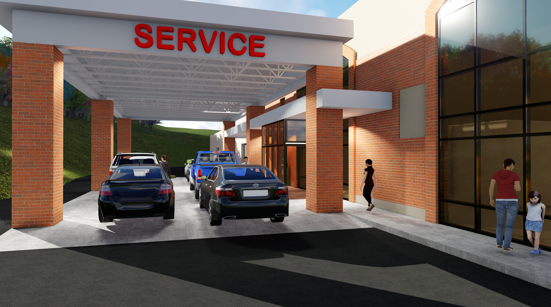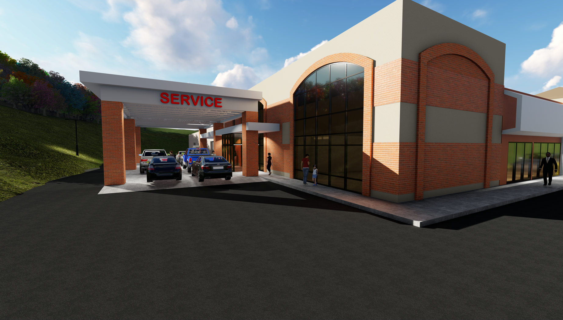 Architectural design services for the South Hills Auto Service Canopy Addition over the express lane, designed for quick repairs, enhancing the service area’s efficiency.
