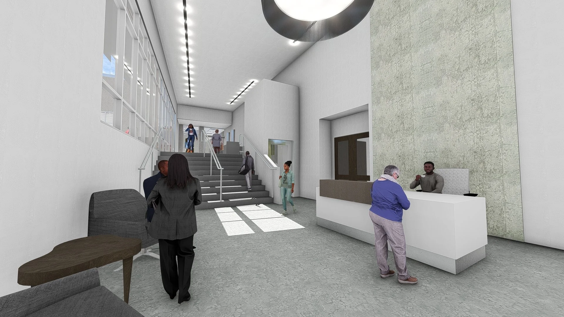Interior Renovation – RWA was selected by the City of Pittsburgh DPW to upgrade the interior of the Homewood Senior Center. Enhancements encompassed all interior finishes, custom reception desk casework, installation of new LED lighting throughout the facility, as well as integration of a hearing loop system and an emergency pull cord system to support the needs of elderly clients.